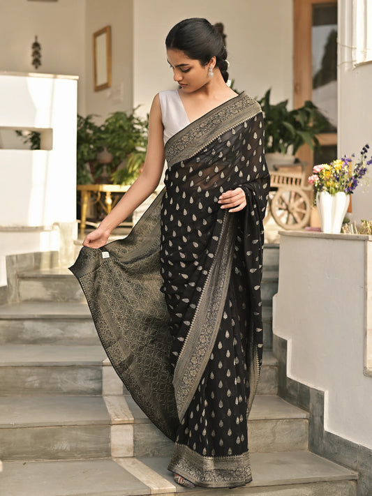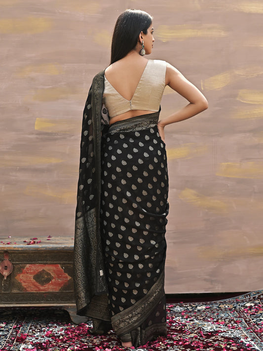 VAANI - BLACK VISCOSE SAREE WITH OVERALL BUTTA