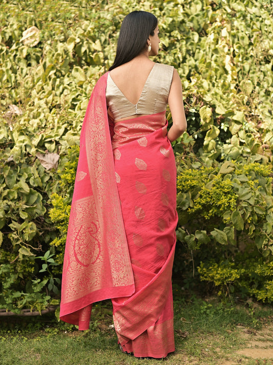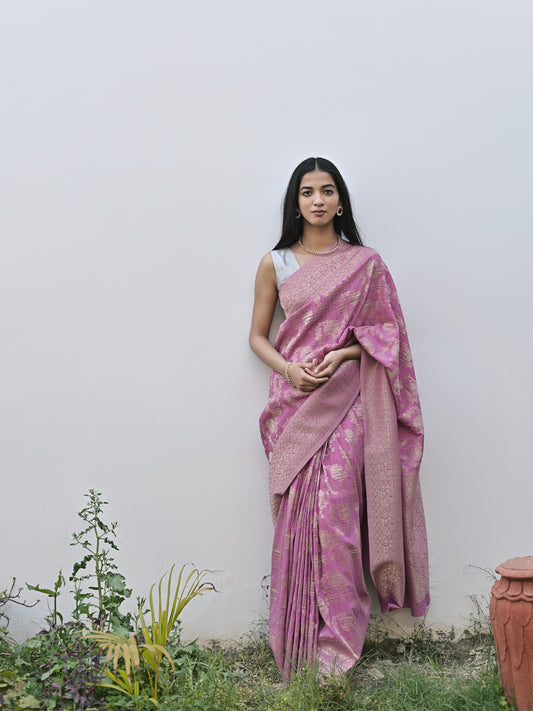 SAMAIRA - ROSE PINK VISCOSE SAREE WITH ALL-OVER FLORAL JAAL BUTTA