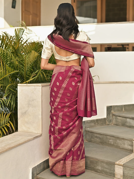 AVISHA - Magenta VISCOSE SAREE WITH ALL OVER FLORAL BUTTA JAAL