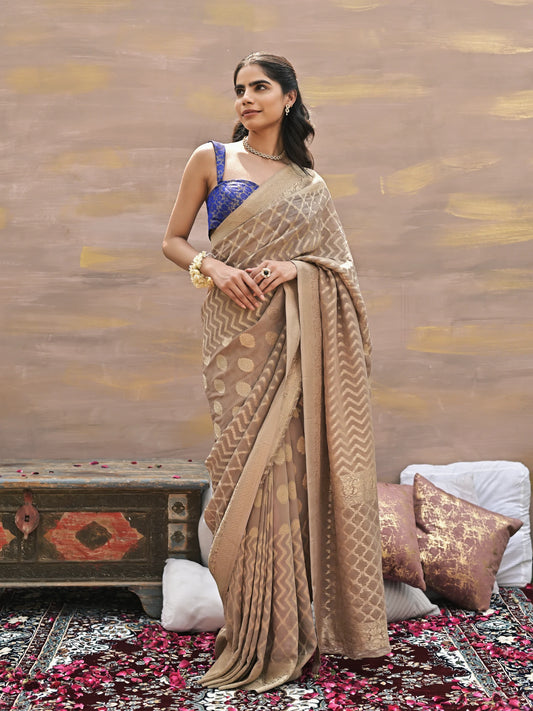 Save Rs. 2,040.00HARINI - LIGHT BROWN VISCOSE SAREE WITH JAAL AND BUTTI