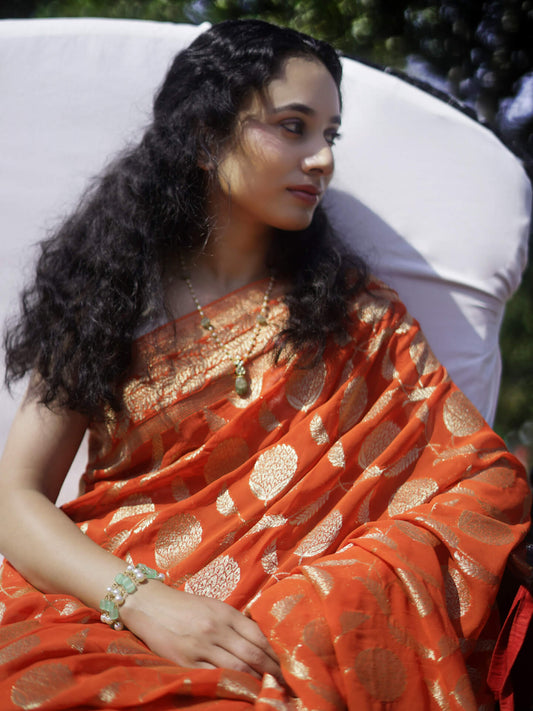 AVANTIKA - ORANGE VISCOSE SAREE WITH GOLD ZARI