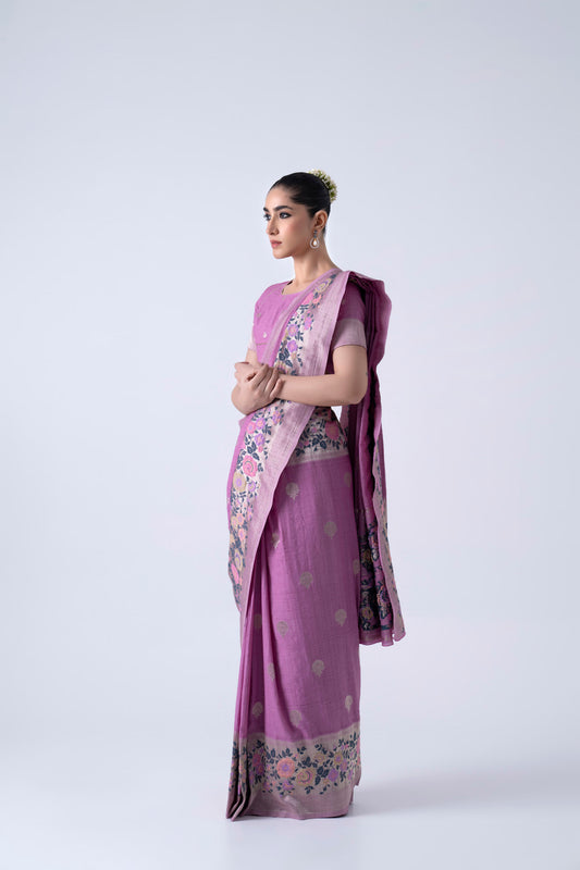 Lilac Viscose Saree With Overall Butti