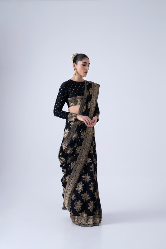 Black viscose saree with butta