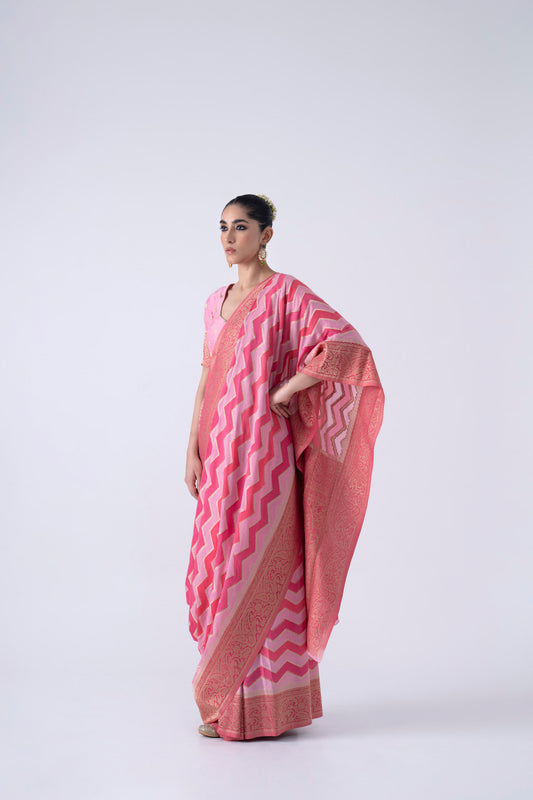 Sold outPink Saree With Zizag Pattern