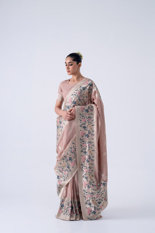 Dusty Pink Viscose Saree With Colourful Floral Border
