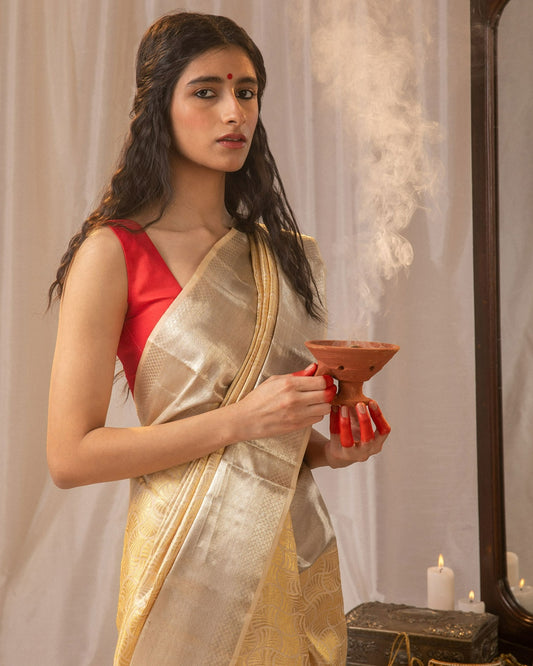 5. Ivory Kanchipuram Silk Saree