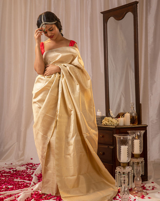 Elevate your style with the understated elegance of the Ivory Kanchipuram Silk Saree. This neutral and sophisticated shade is a versatile choice, suitable for various occasions and effortlessly blending with any accessory.