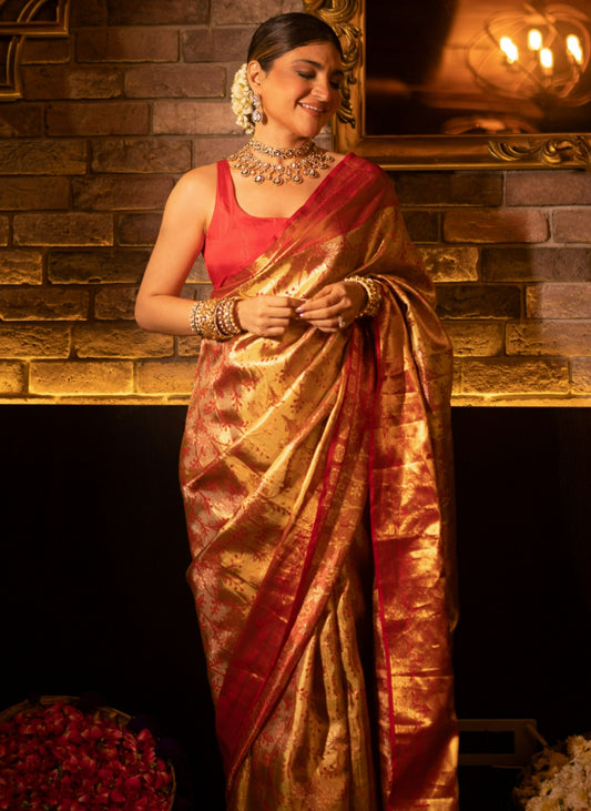 2. Red And Gold Kanchipuram Silk Saree