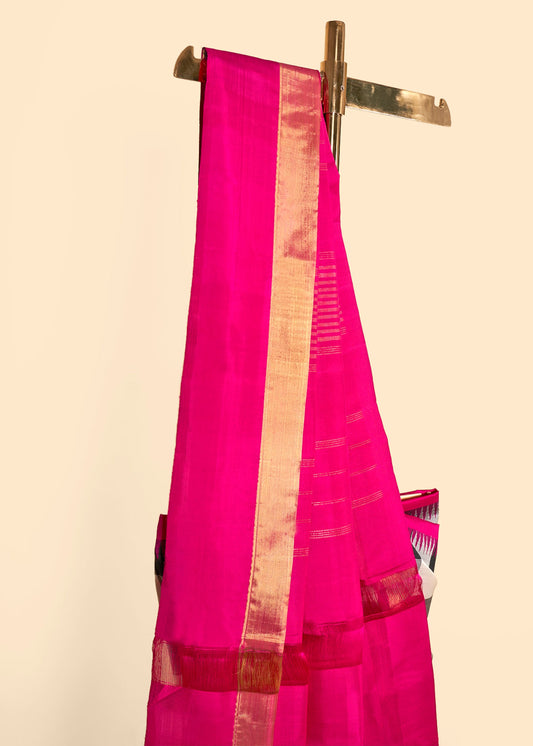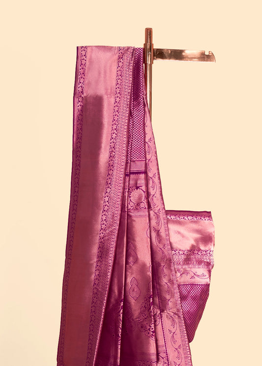 Embrace femininity and grace with the Pink Kanchipuram Silk Saree. From soft pastels to vibrant pinks, this colour spectrum is perfect for celebrations, weddings, or any occasion where you want to radiate charm.