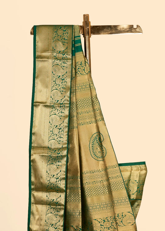 Embrace nature's freshness with the Green Kanchipuram Saree. This serene and elegant colour brings a sense of rejuvenation, making it a splendid choice for festivities and cultural events.