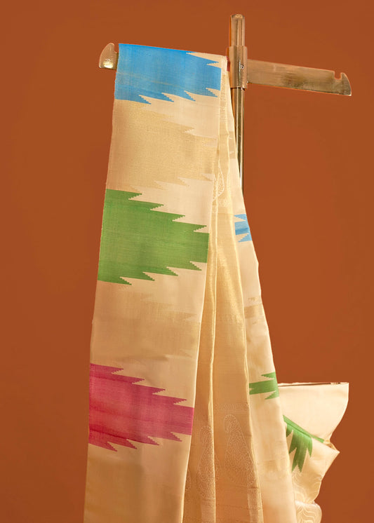 Elevate your style with the understated elegance of the Ivory Kanchipuram Silk Saree. This neutral and sophisticated shade is a versatile choice, suitable for various occasions and effortlessly blending with any accessory.