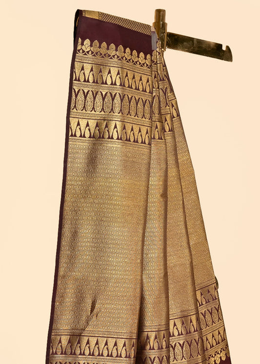 Immerse yourself in the timeless allure of the classic Red Kanchipuram Saree. This eternal shade of passion and grace is perfect for traditional events and celebrations, adding a touch of sophistication to your ensemble.