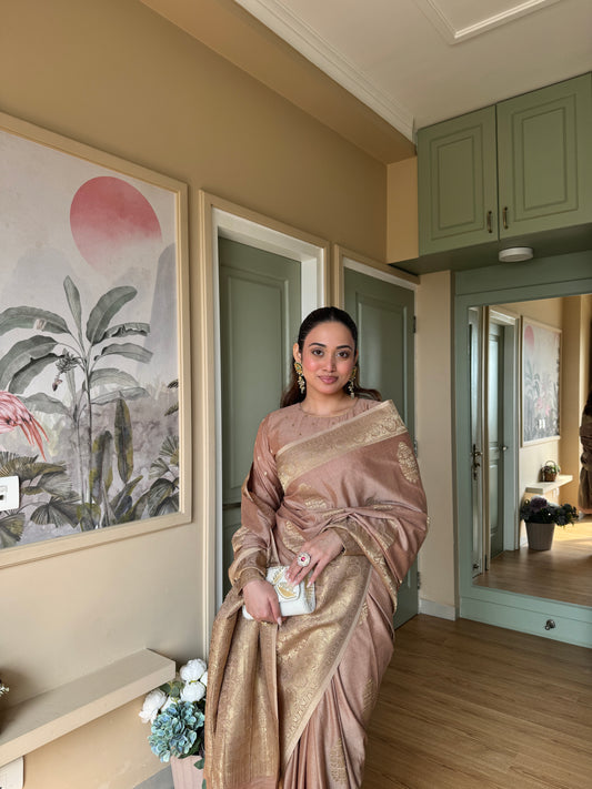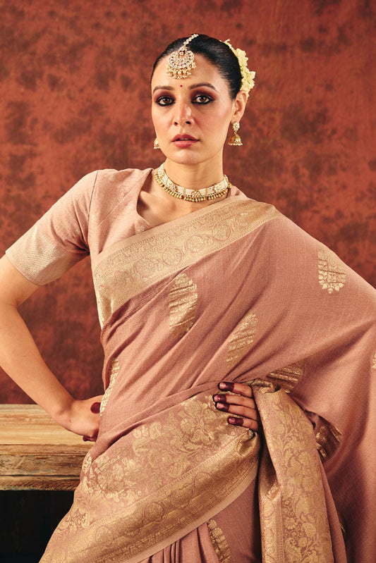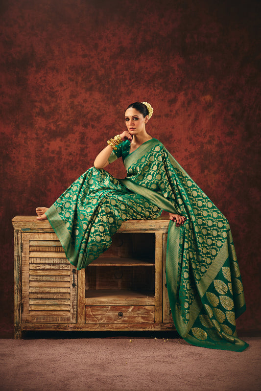 Sage Green Banarasi Silk Blend Saree with Gold Zari Brocade Border