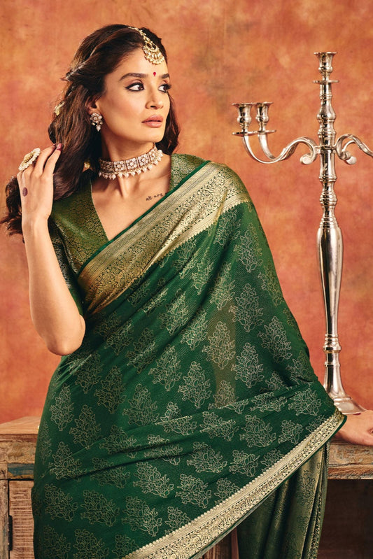 Emerald Green Viscose Jacquard Saree