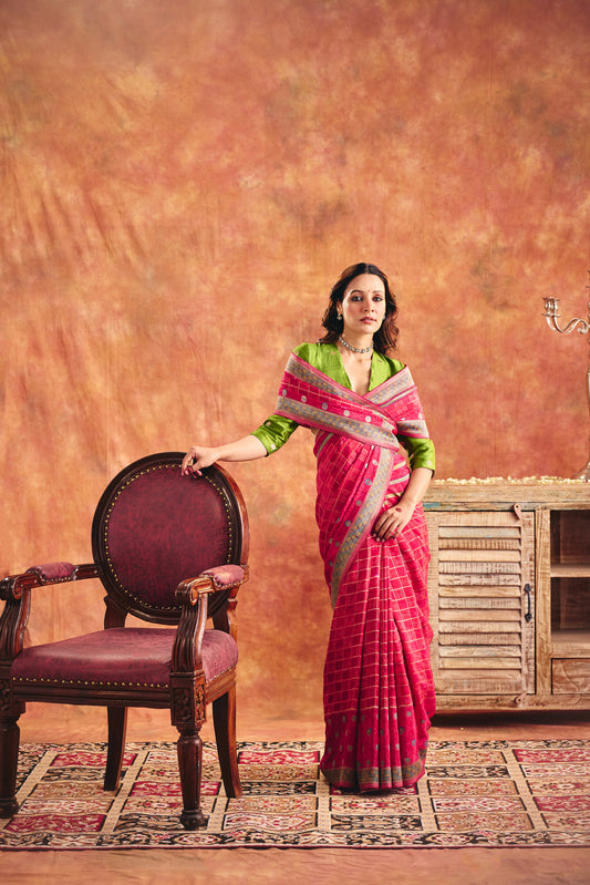 Wine Viscose Jacquard Saree with Zari Border