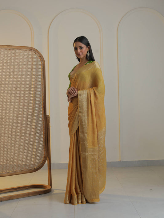 SABR - MUSTARD YELLOW SATIN CREPE SAREE