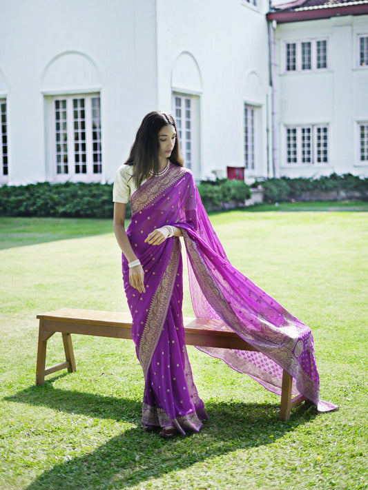 POOJA - VIOLET VISCOSE SAREE WITH SMALL BUTTIES