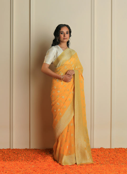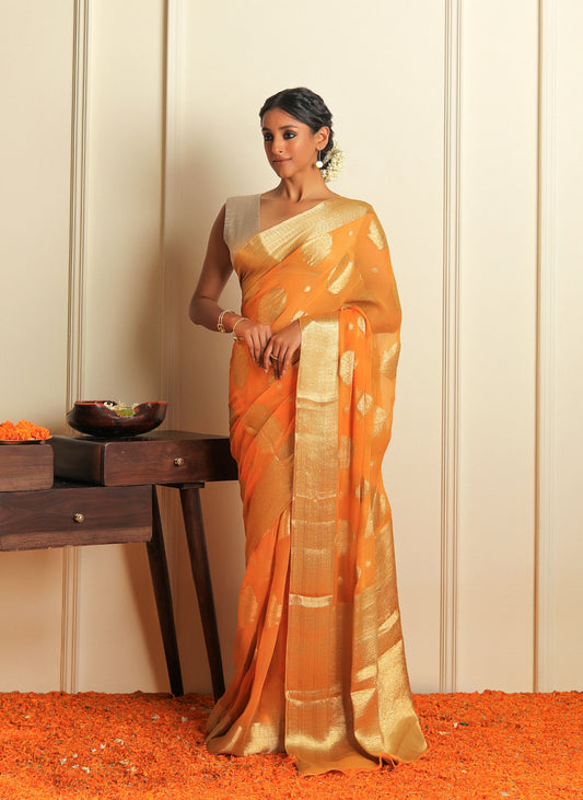 NAZAAKAT - ORANGE CHIFFON SAREE