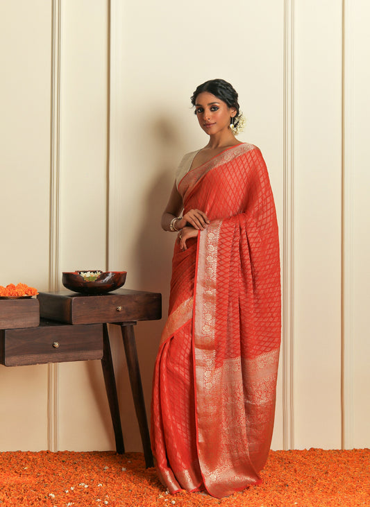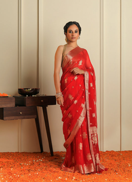 LEHER - RED CHIFFON SAREE