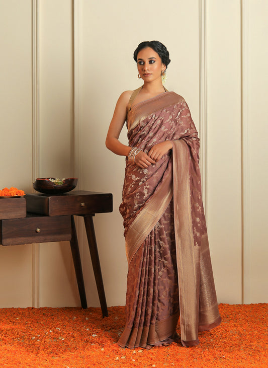 HASEEN - BROWN SATIN SAREE