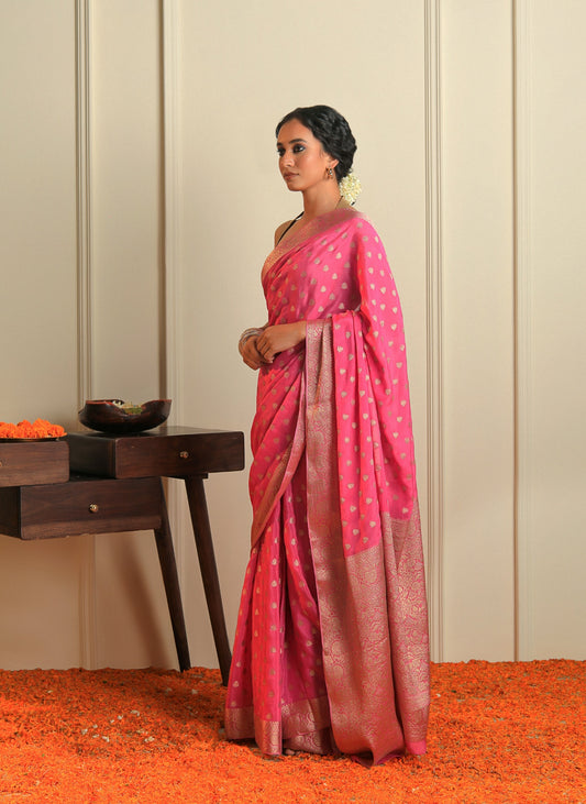 ADAA - FLORESCENT PINK CHIFFON SAREE