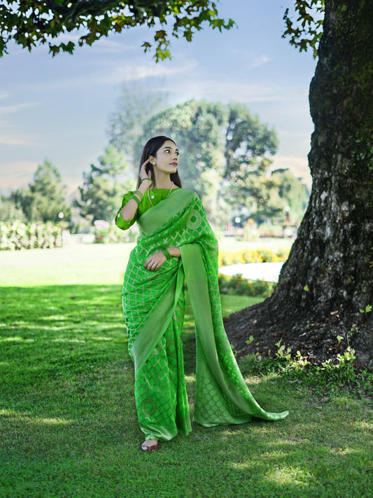 MEGHA - LIME GREEN VISCOSE JAAL SAREE