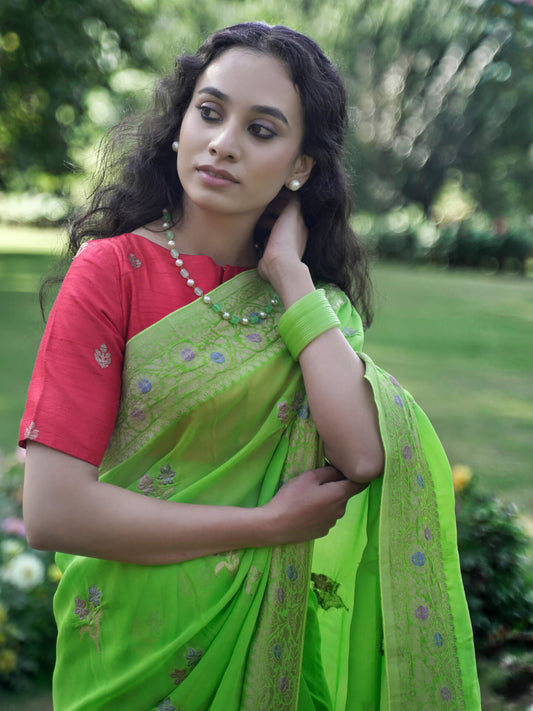 MEERA - LIME GREEN VISCOSE FLORAL SAREE