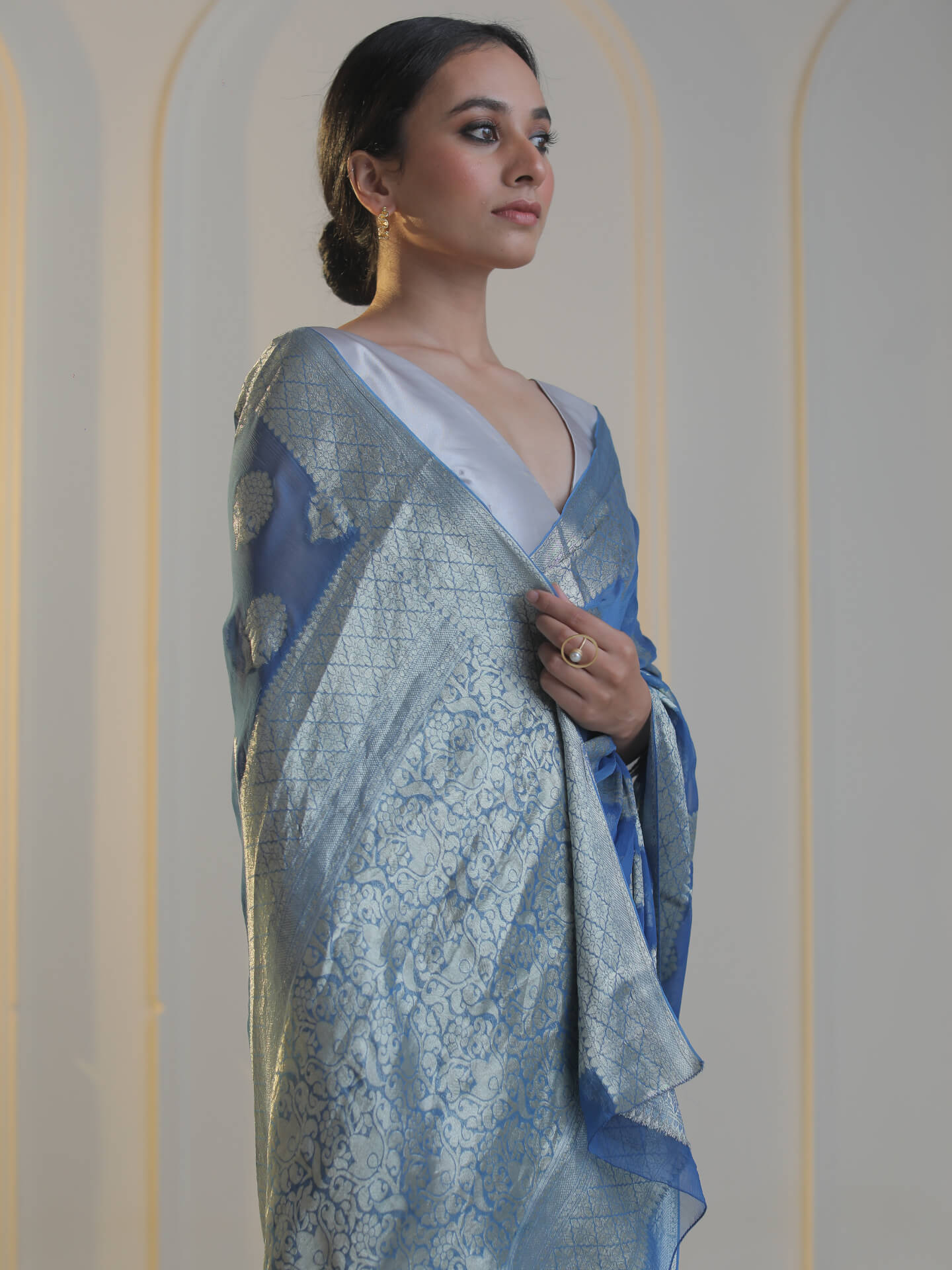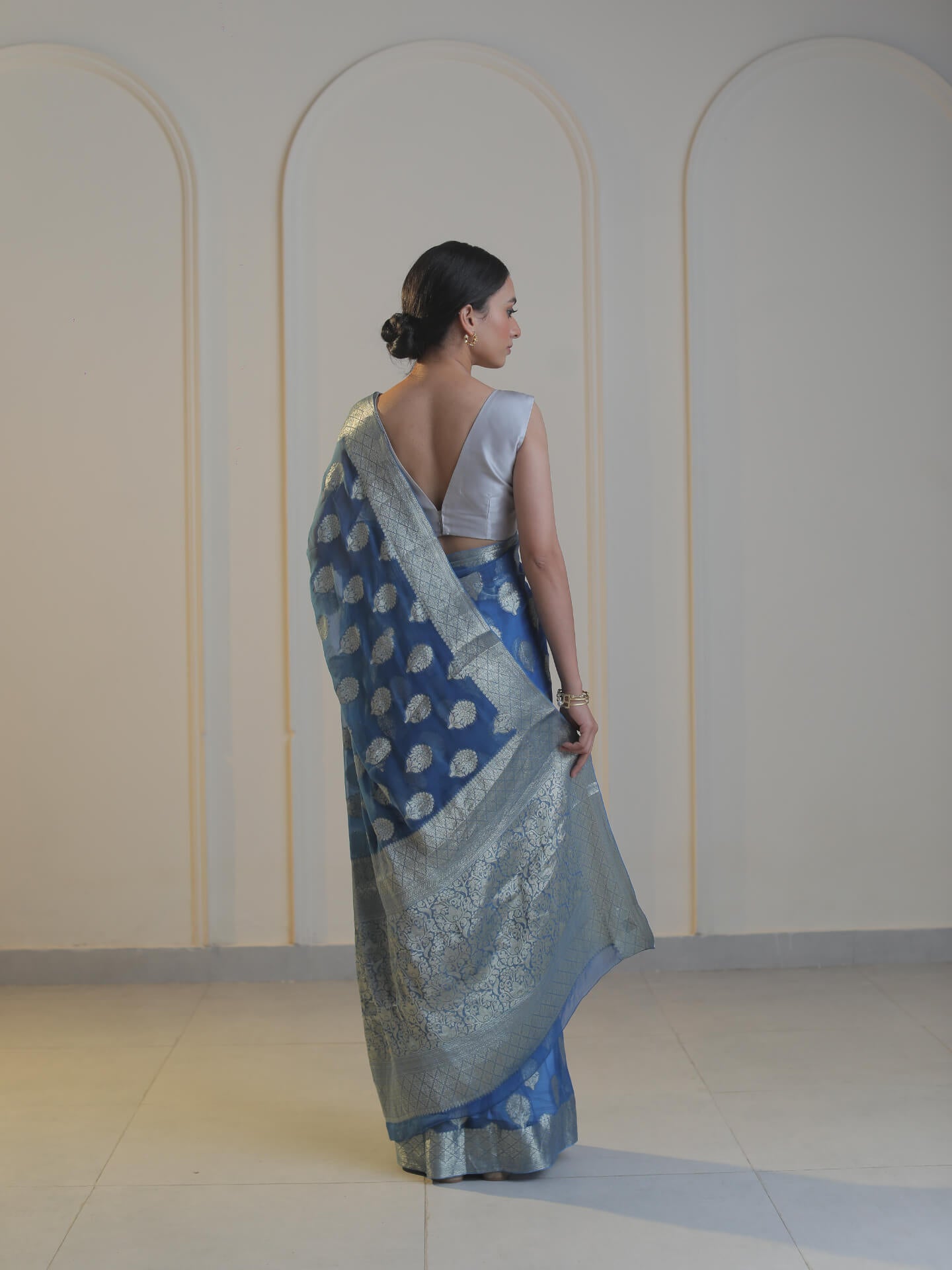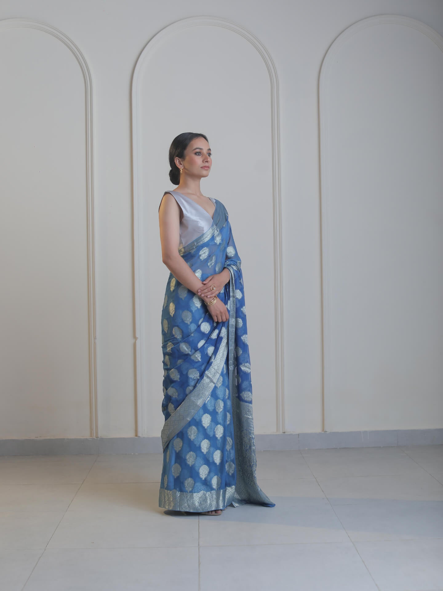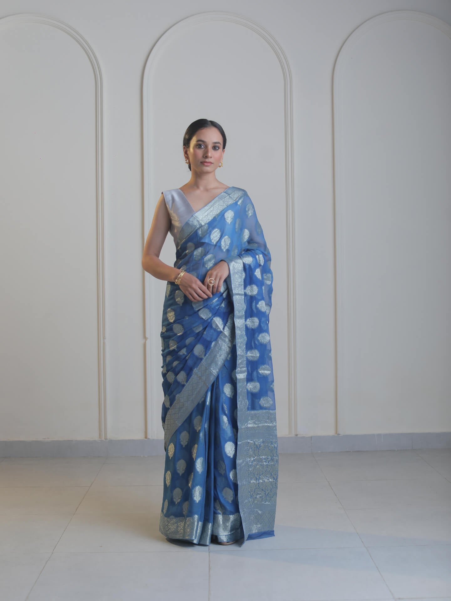 - Also, expect differences in the colour and weave of the saree as each saree is uniquely handwoven.