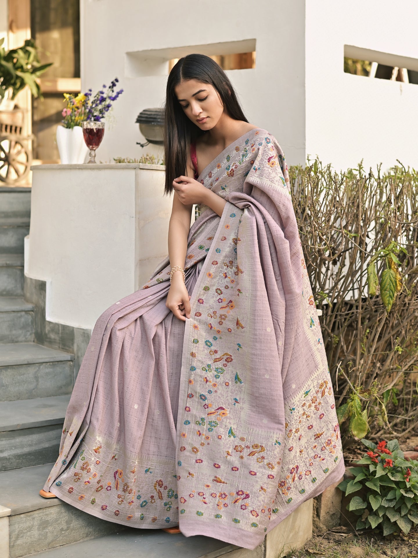 SHANAYA - DUSTY LAVENDER VISCOSE SAREE WITH COLOURFUL FLORAL BORDER