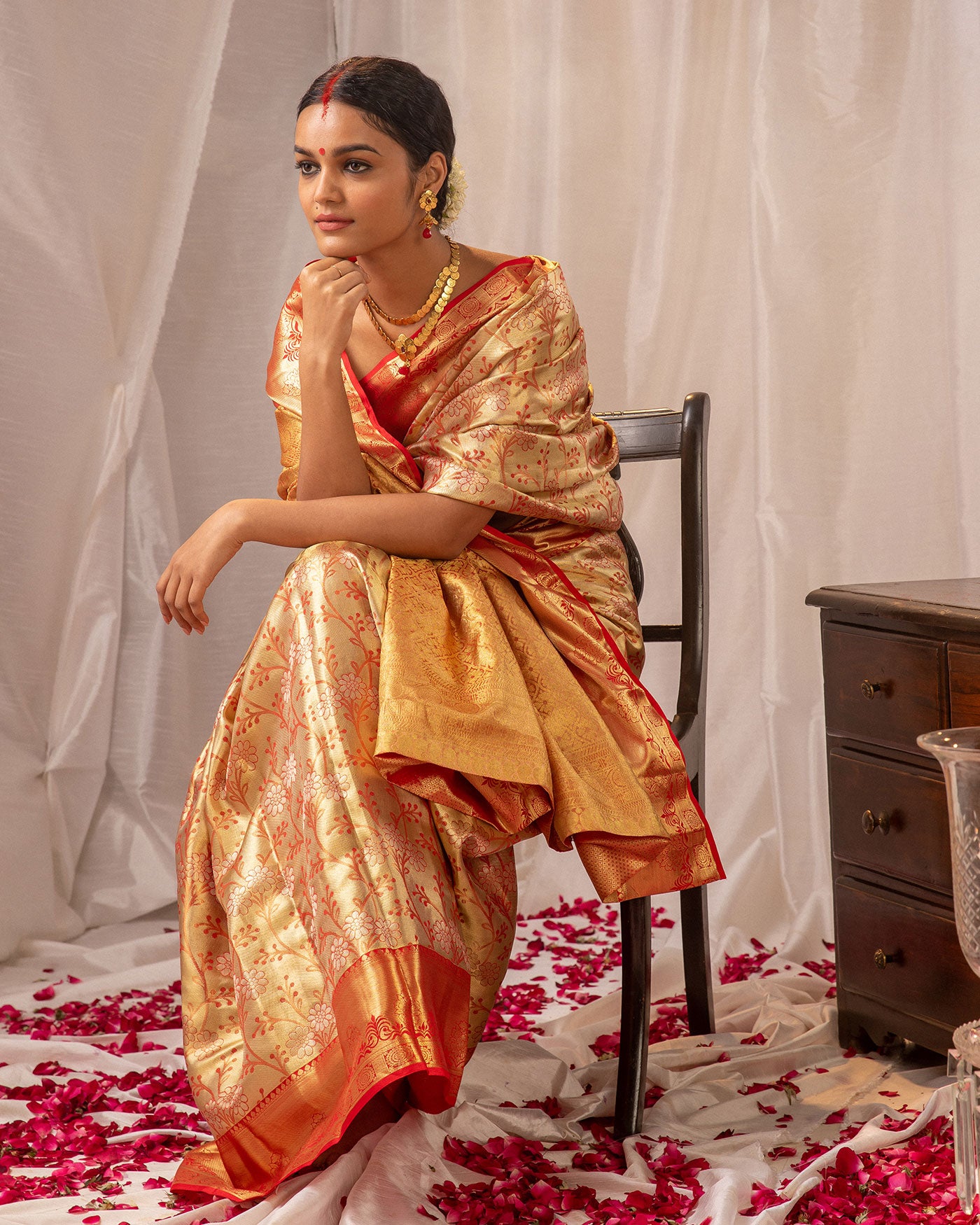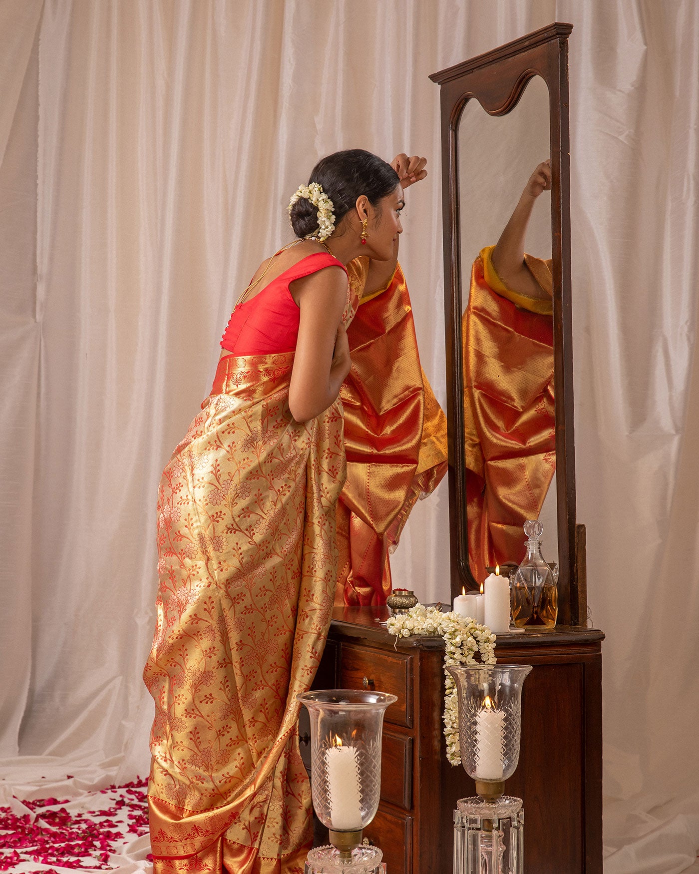 - Also, expect differences in the colour and weave of the saree as each saree is uniquely handwoven.
