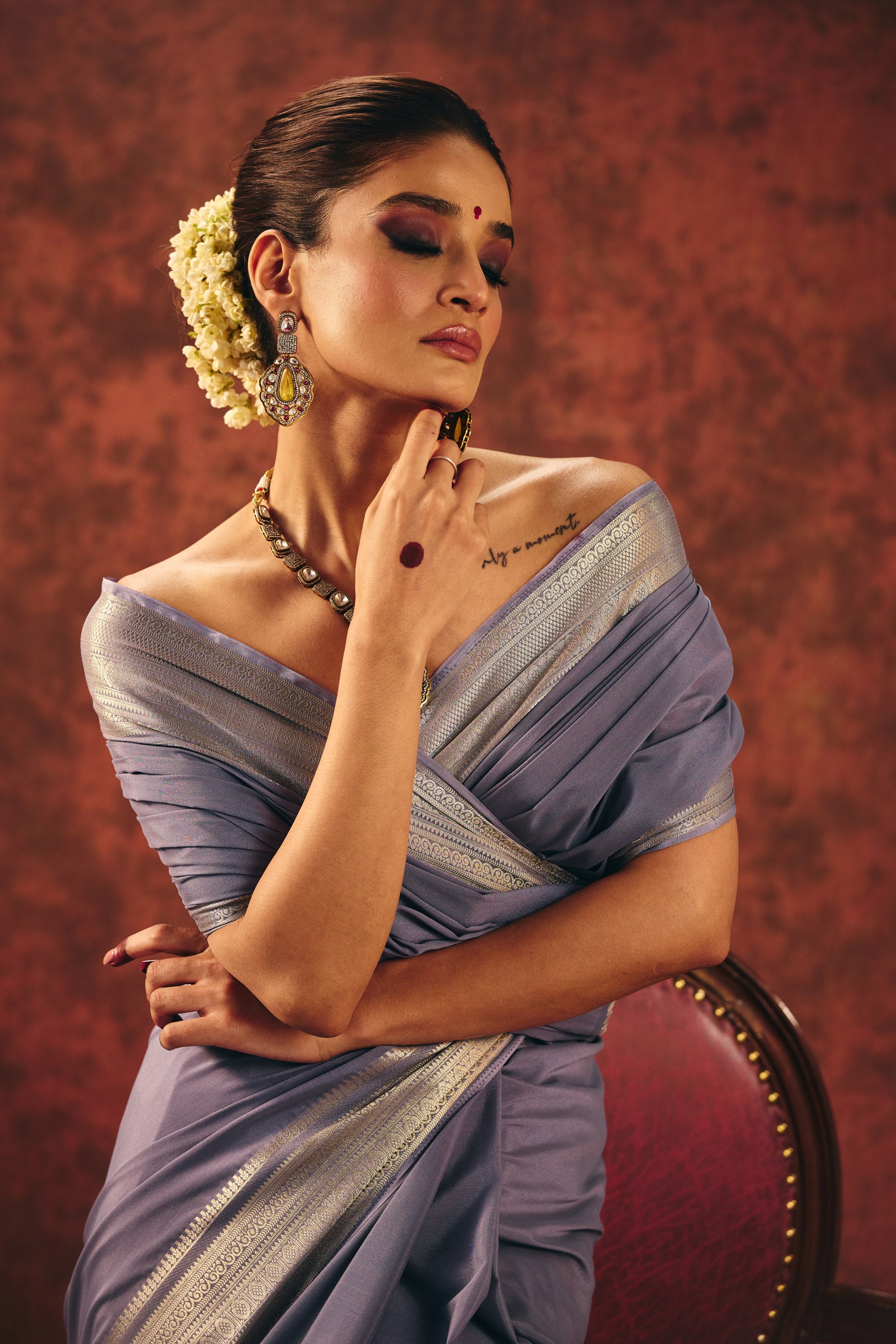 - The blouse worn in the images is for styling purposes only. This saree comes with an unstitched blouse piece, allowing you to customize the fit and design to your preference.