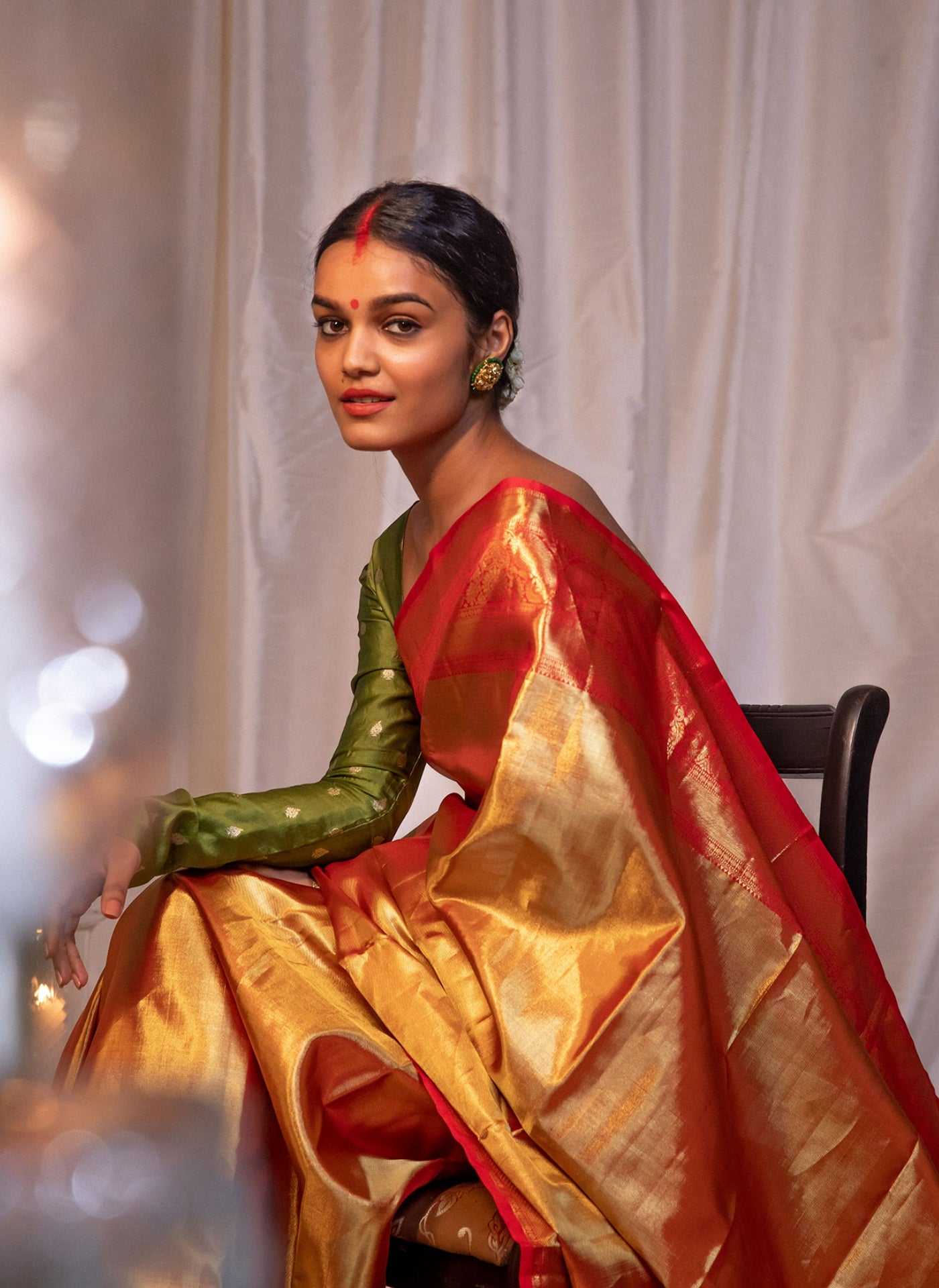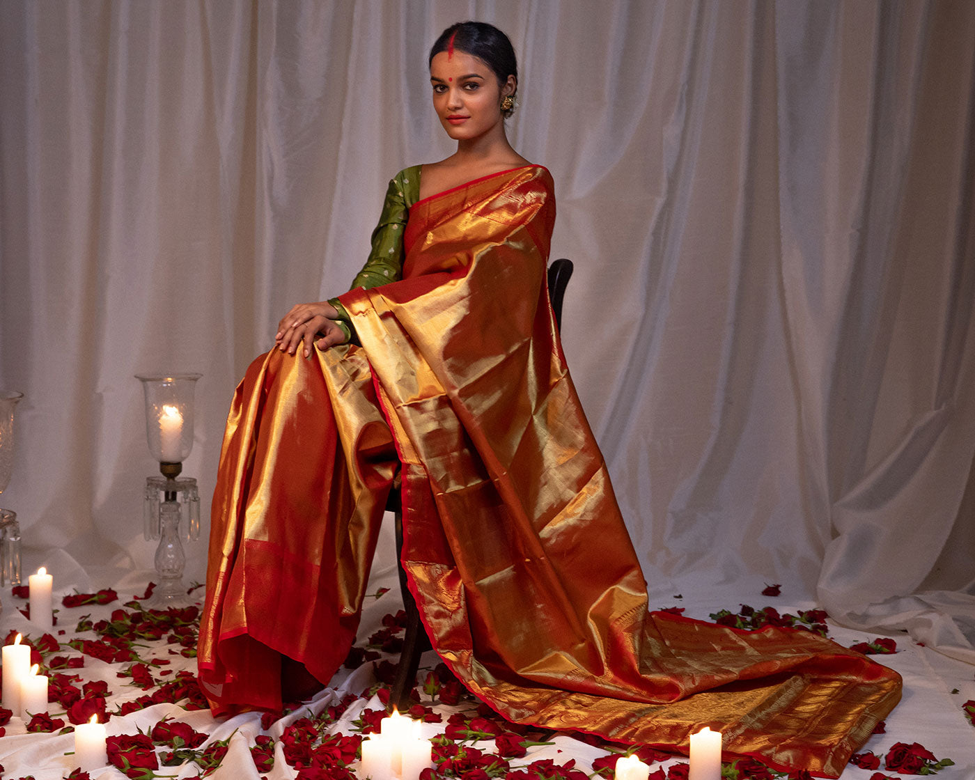 - Also, expect differences in the colour and weave of the saree as each saree is uniquely handwoven.