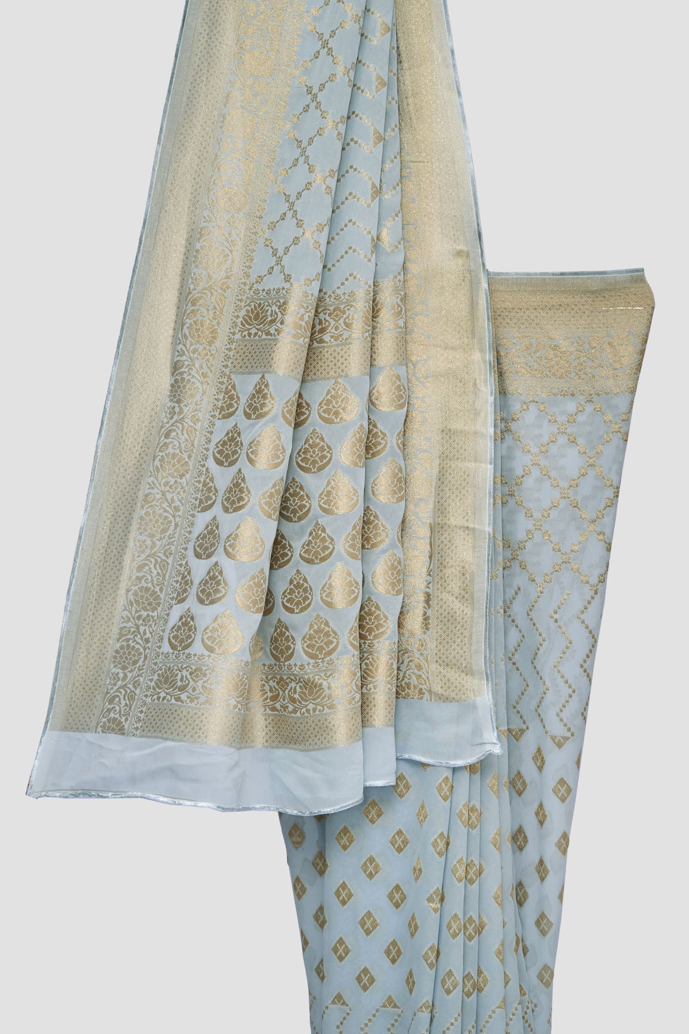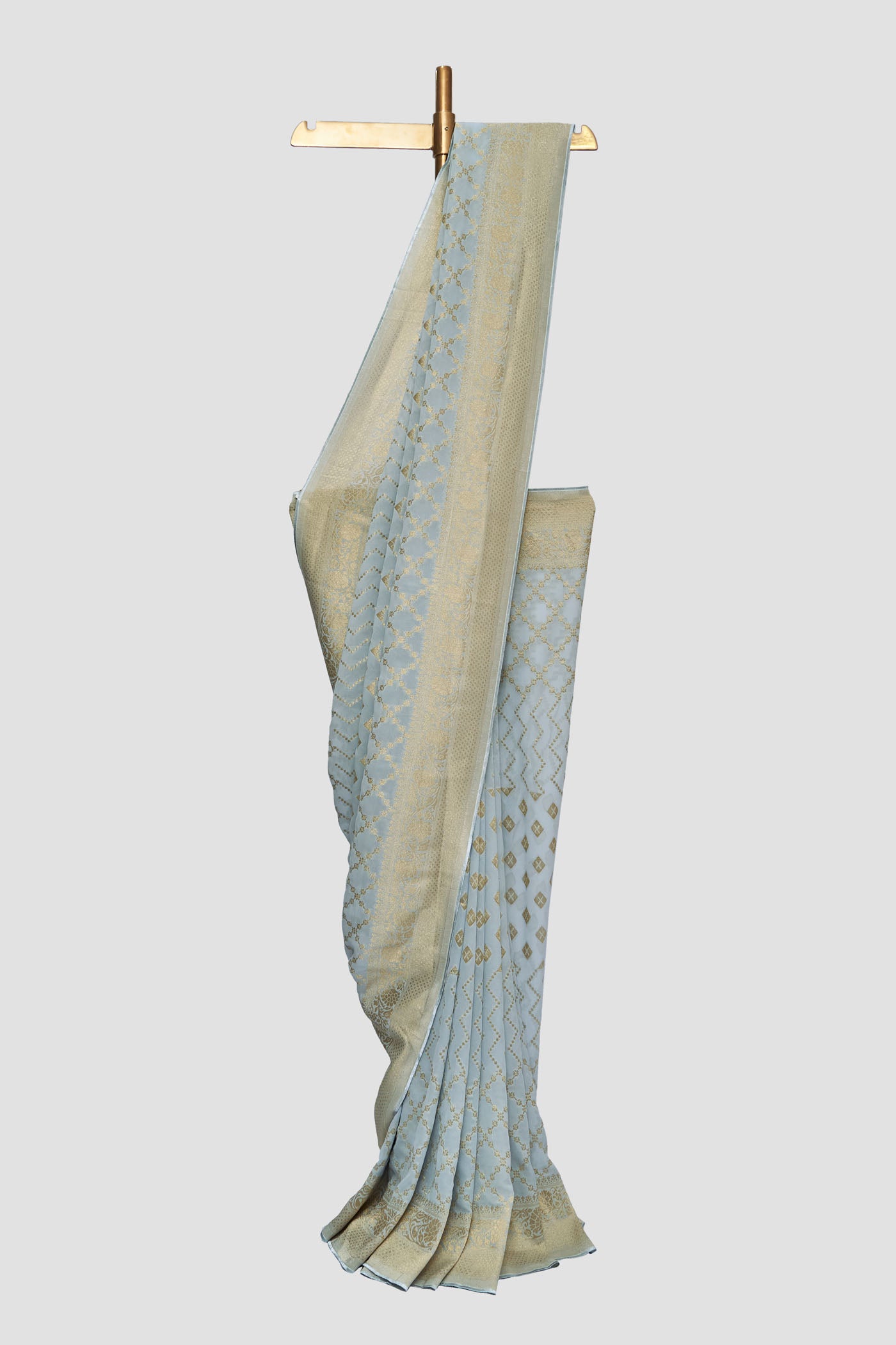 Pastel Blue Geometric Pattern Jaal Georgette Saree