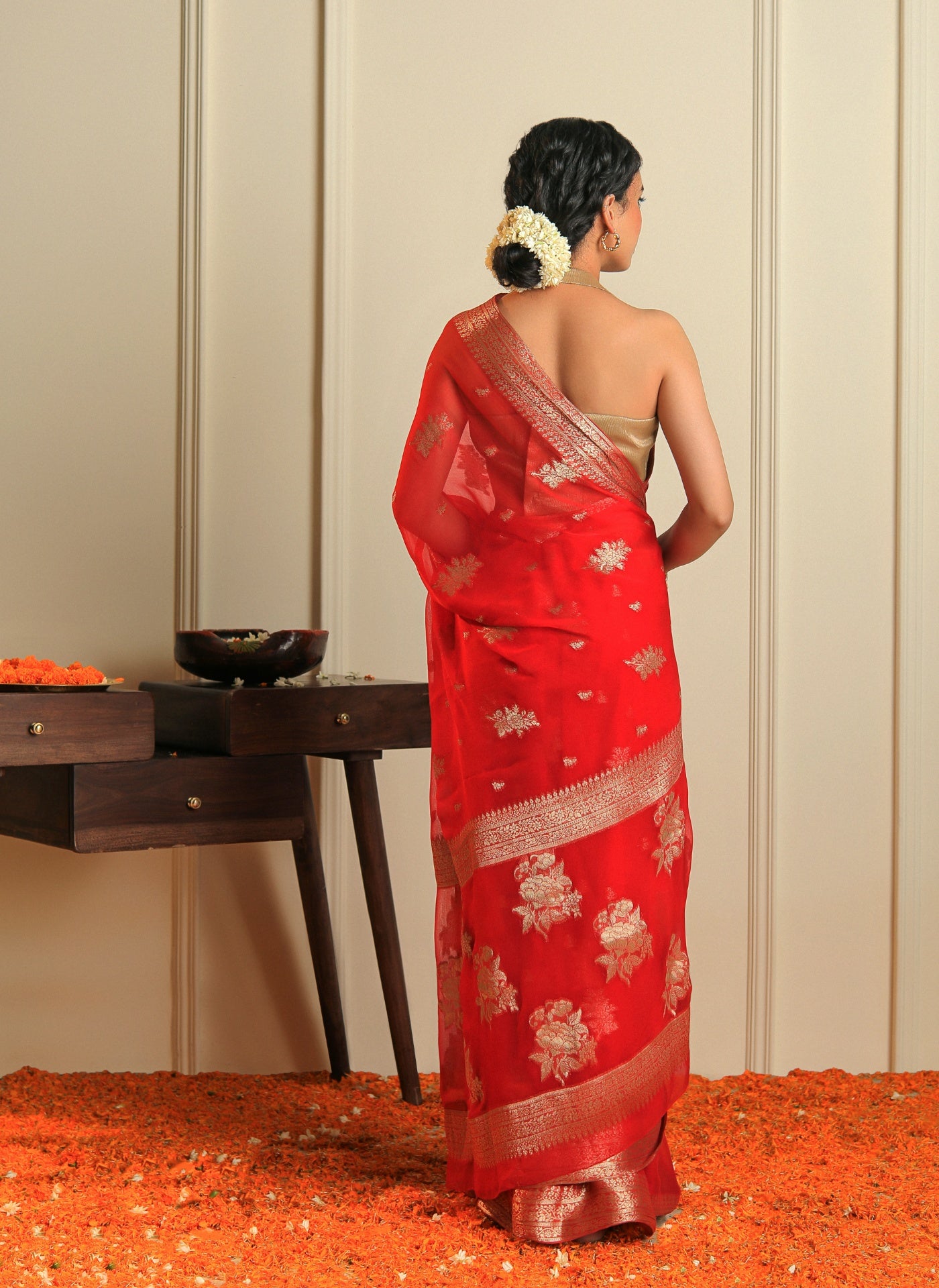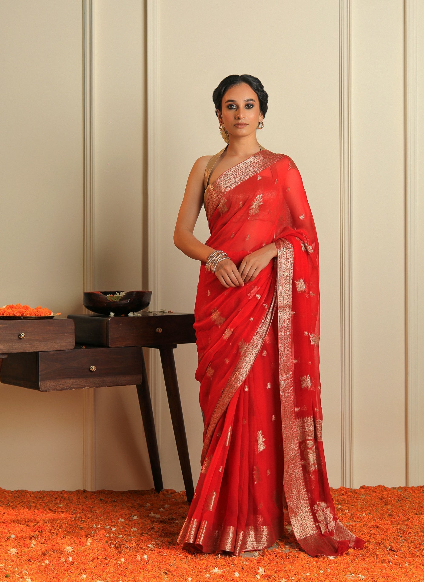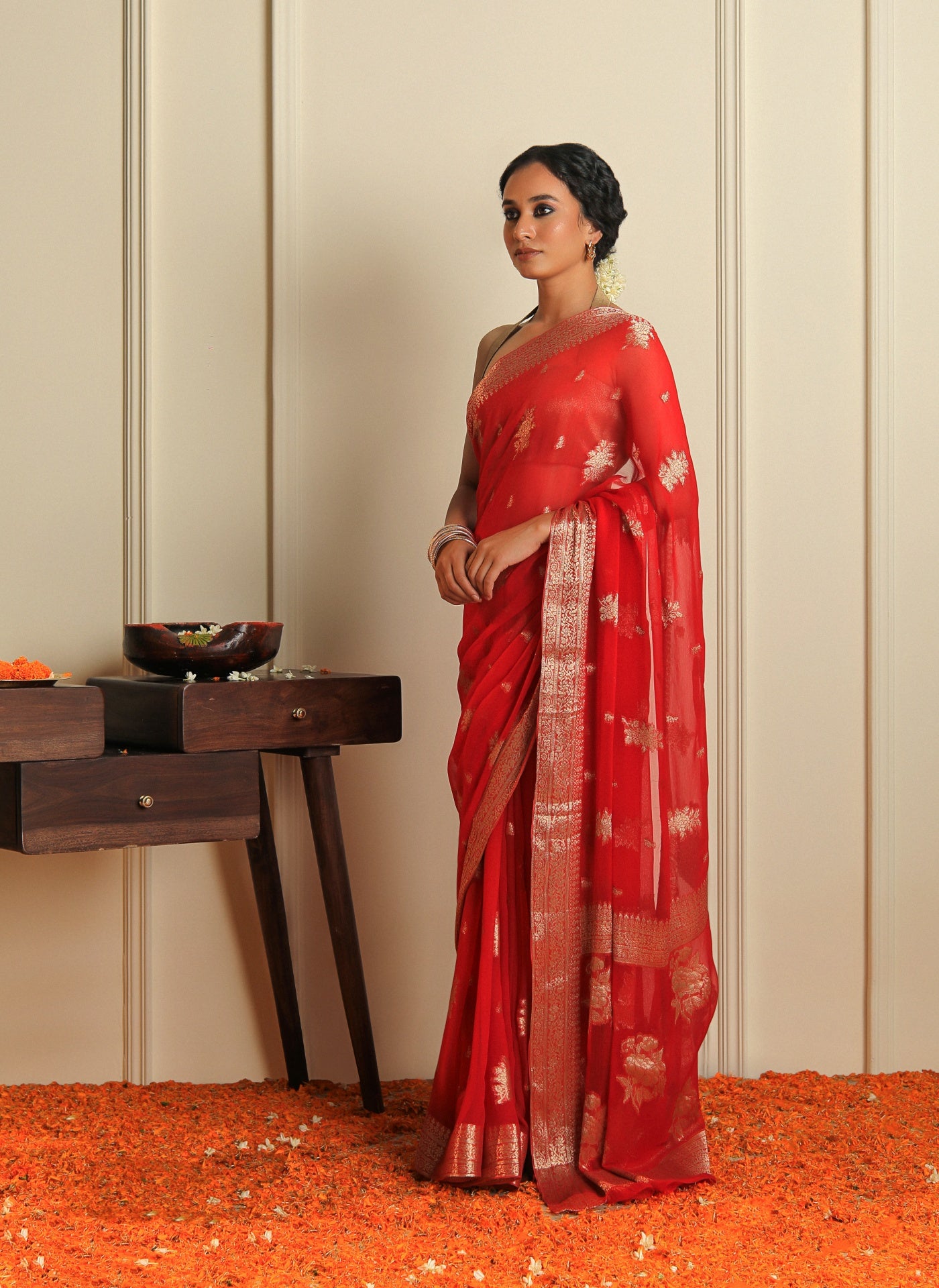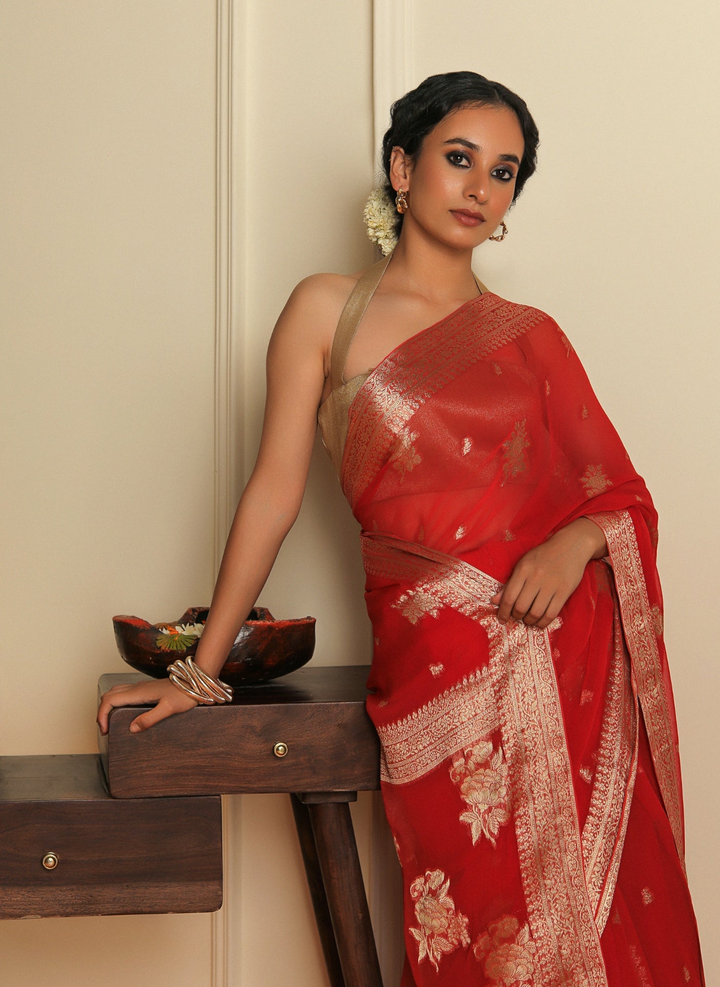 - Also, expect differences in the colour and weave of the saree as each saree is uniquely handwoven.