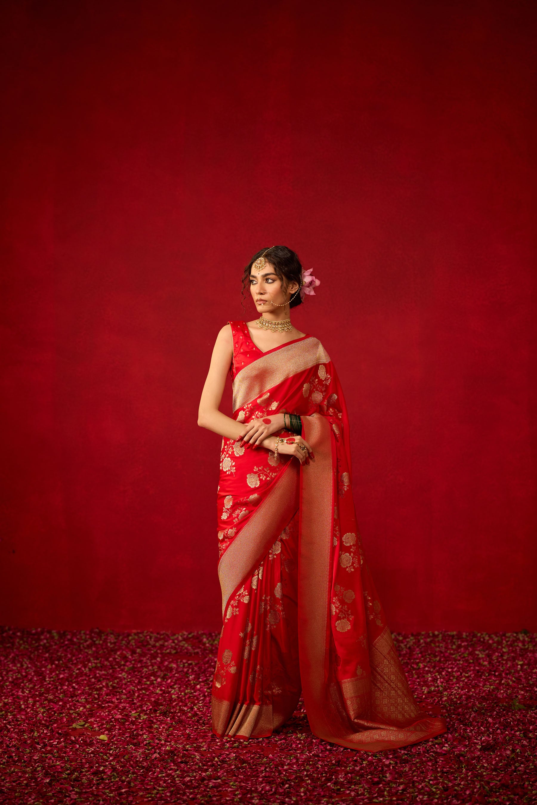 - Also, expect differences in the colour and weave of the saree as each saree is uniquely handwoven.