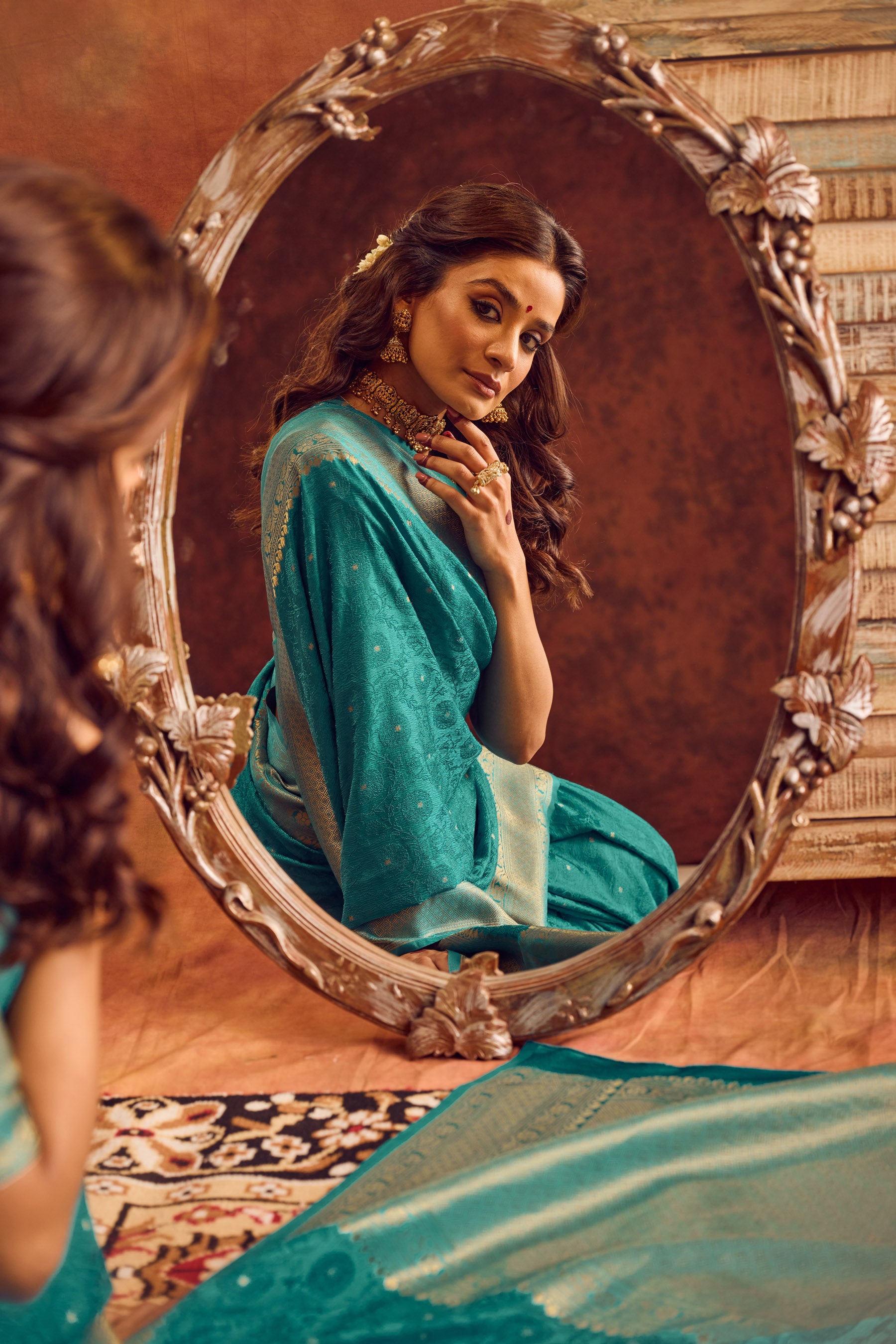 - Also, expect differences in the colour and weave of the saree as each saree is uniquely handwoven.